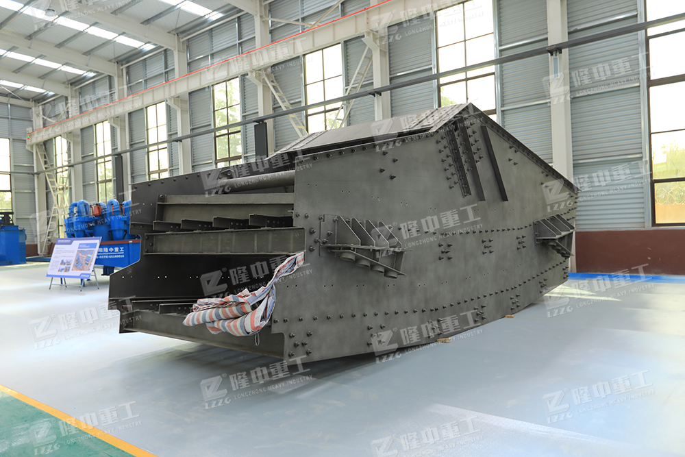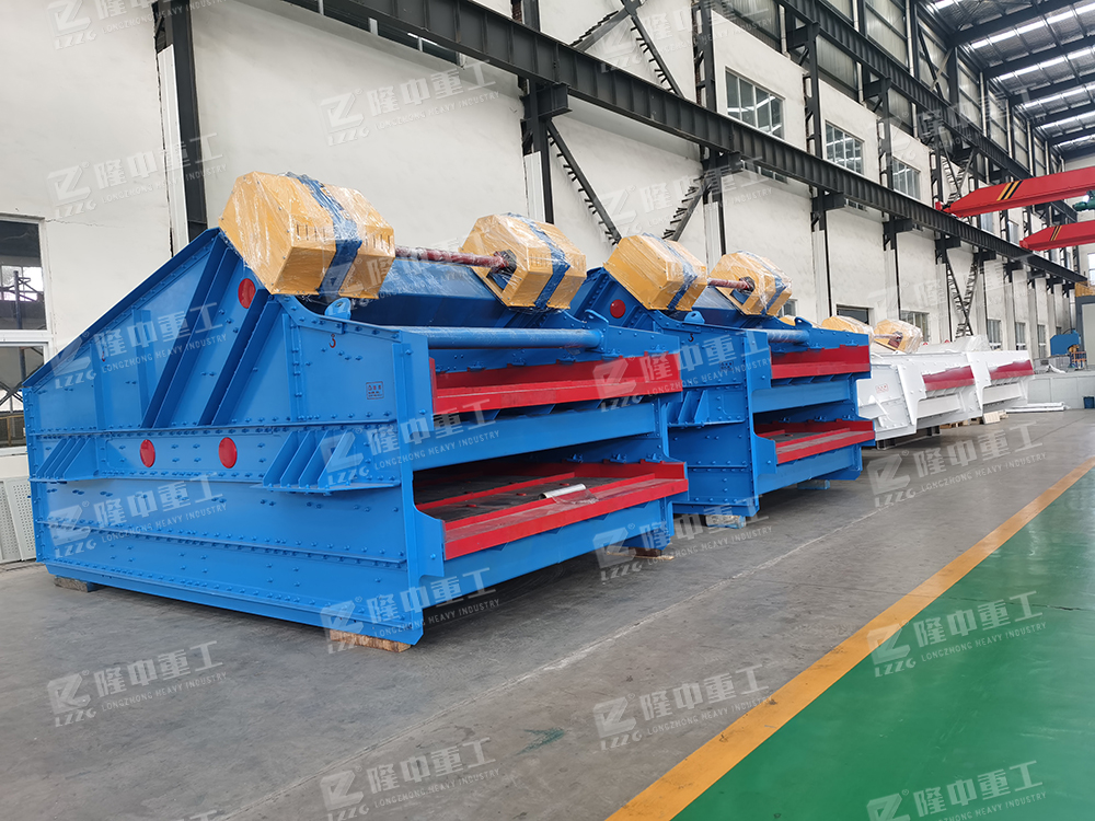 香蕉振動篩在入料端有一斜坡面,先以34°開始,緊接著角度下降到大約為10°的出料端為止。篩面采用不同傾角的折線形式,從入料端到出料端物料層厚度是不變。各段篩面上物料量與流速比值穩定、料層較高,呈現均勻狀態篩分效率顯著提高,比相同有效面積篩分機的處理量提高1-2倍,對于細粒含量高,特別是物料中料度占分級粒度尺寸小于1/2的物料含量較大時,香蕉型振動篩分機具有較高的篩分效率。