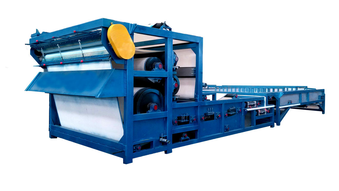 利用上、下濾帶夾著濾餅繞著壓榨輥進行反復地擠壓與剪切作用,脫除了大量的毛細作用水,使濾餅水分逐漸減少。